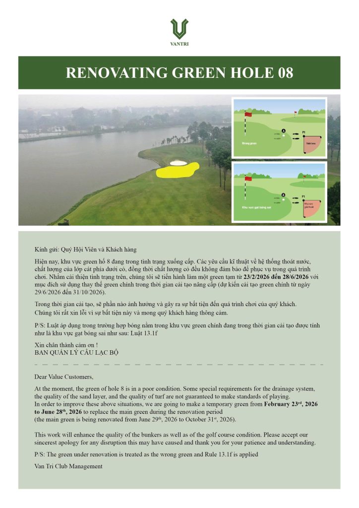 In order to improve these above situations, we are going to make a temporary green from February 23rd, 2026 to June 28th, 2026 to replace the main green during the renovation period (the main green is being renovated from June 29th, 2026 to October 31st, 2026).